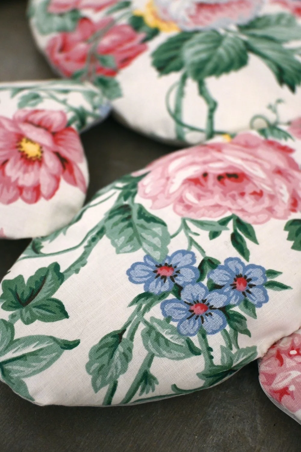 There are five shapes, and twenty cut outs of each shape, one hundred huesito pillows in total, joined together.